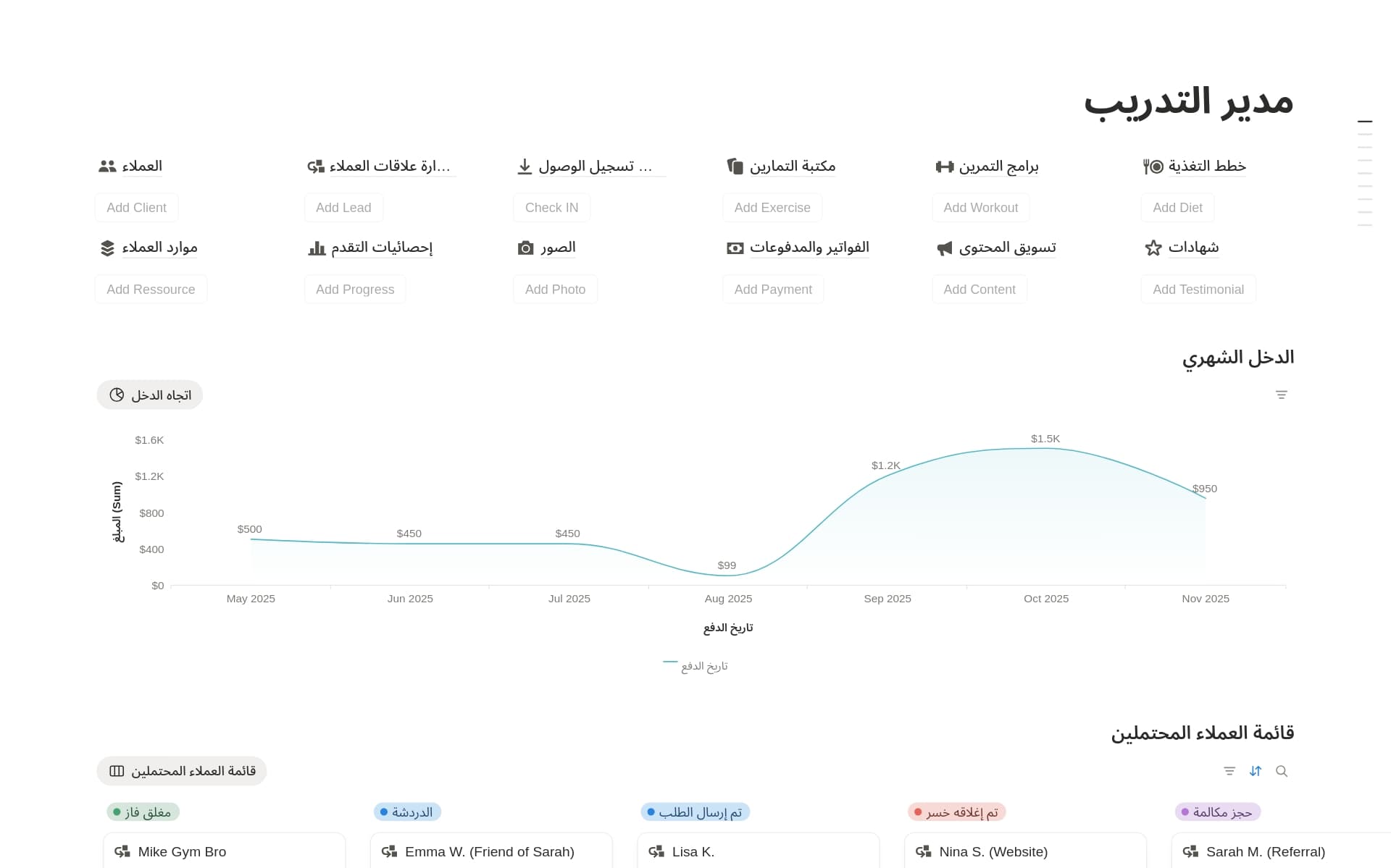 لوحات المعلومات الشخصية