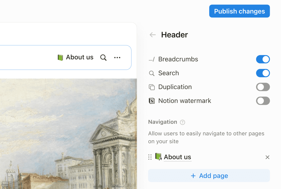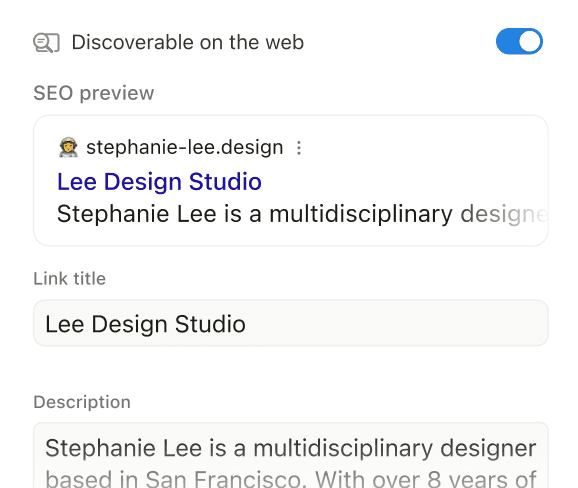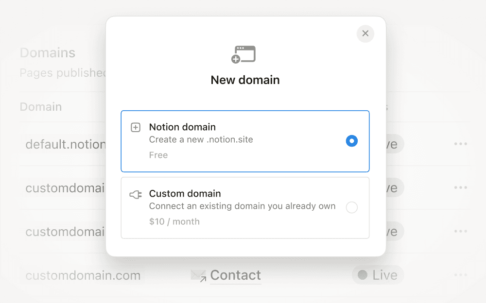 Conecte um domínio personalizado ou escolha um domínio Notion gratuitamente.