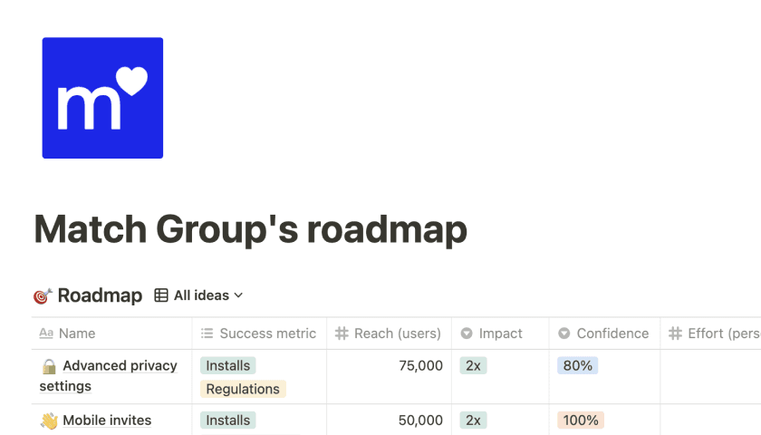 Roadmap do Match Group
