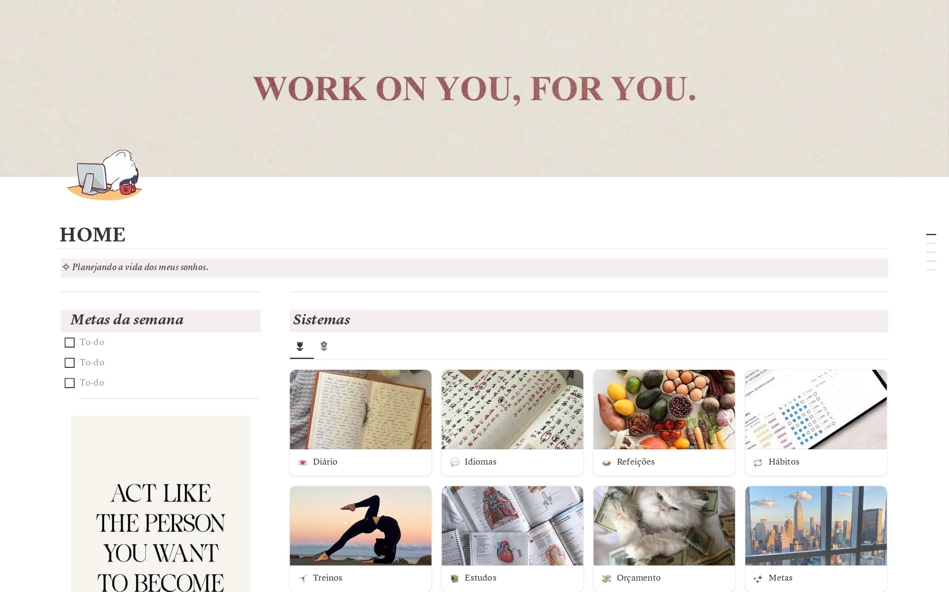 Transformo ideias em sistemas práticos, bonitos e acessíveis. Crio templates, plugins e recursos para freelancers, criadores e equipes que valorizam organização, clareza e agilidade no dia a dia.. Comece com hoje. Menos bagunça, mais progresso. 🚀 #Progress