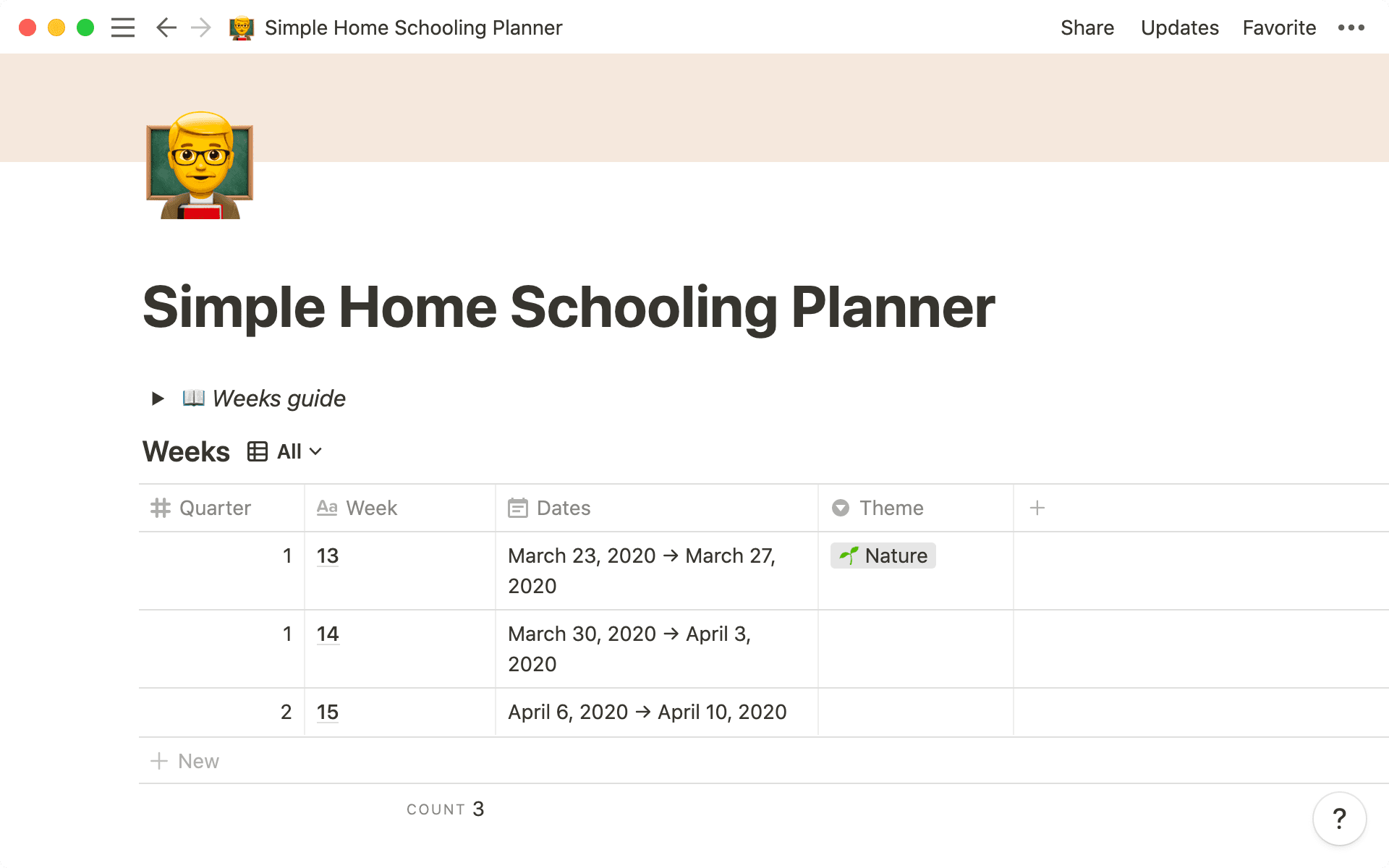 Pro tip: Create dynamic associations between lessons, units and standards — linking databases to one another through relations gives you a big picture understanding of your yearly plan. With this setup, any adjustments you make to the “lessons” database will be reflected in your unit plans, and your standards map, so that everything is always in sync.