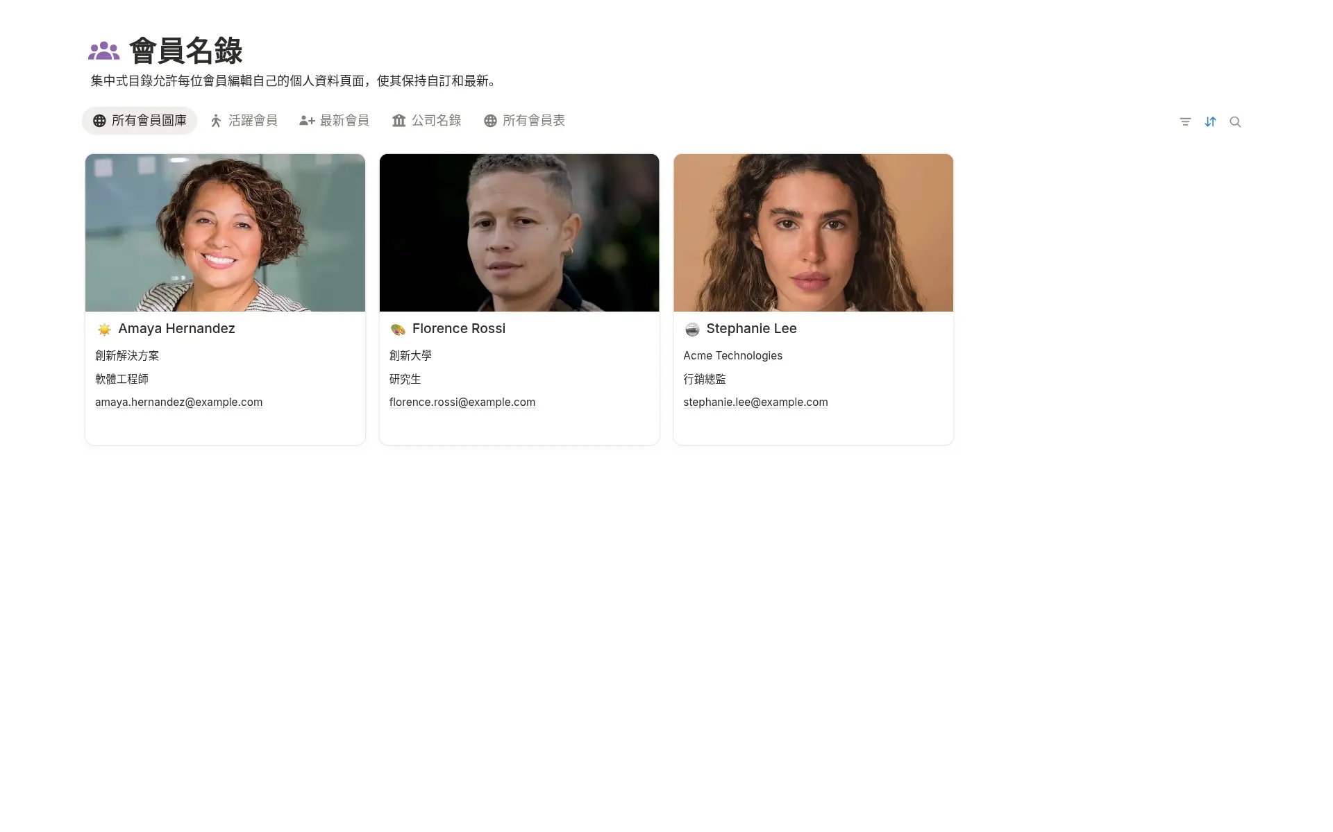 將範本新增至工作空間後,你可以依照需求盡情變更、編輯或更新內容。範本是輔助工具,助你建立心中理想的工作空間。