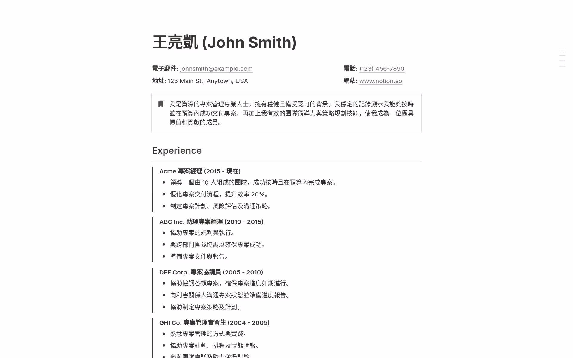 將範本新增至工作空間後,你可以依照需求盡情變更、編輯或更新內容。範本是輔助工具,助你建立心中理想的工作空間。